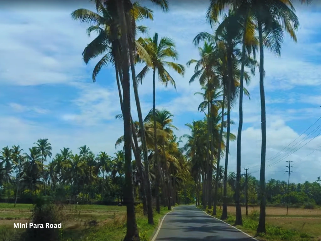 Everyone knows Parra Road, the palm-lined street that became Instagram-famous after appearing in films. But few wander into its quieter cousin — the so-called Mini Parra Road in South Goa. Flanked by towering coconut palms and open fields, this lane is just as charming but blissfully free from crowds.
