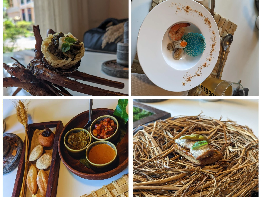 The menu changes seasonally and highlights local, foraged, and organic produce. A single meal here can range from reinvented Goan classics like choris-stuffed bao or seafood risotto with a Konkani twist, to hyper-local tasting menus that tell stories of Goa’s villages and forests. What makes it even more special is the intimate, almost homely vibe of the restaurant — small, quiet, and personal, far from the bustle of beach shacks.