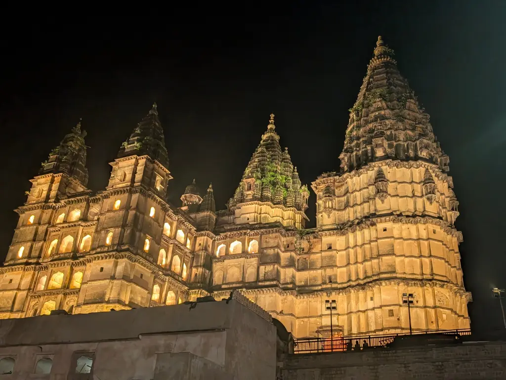 The Chaturbhuj Temple, built for Lord Ram, stands tall with soaring spires and intricate carvings. Though originally meant for Ram, the temple now houses Krishna and Radha idols, reflecting the king’s devotion to Krishna.