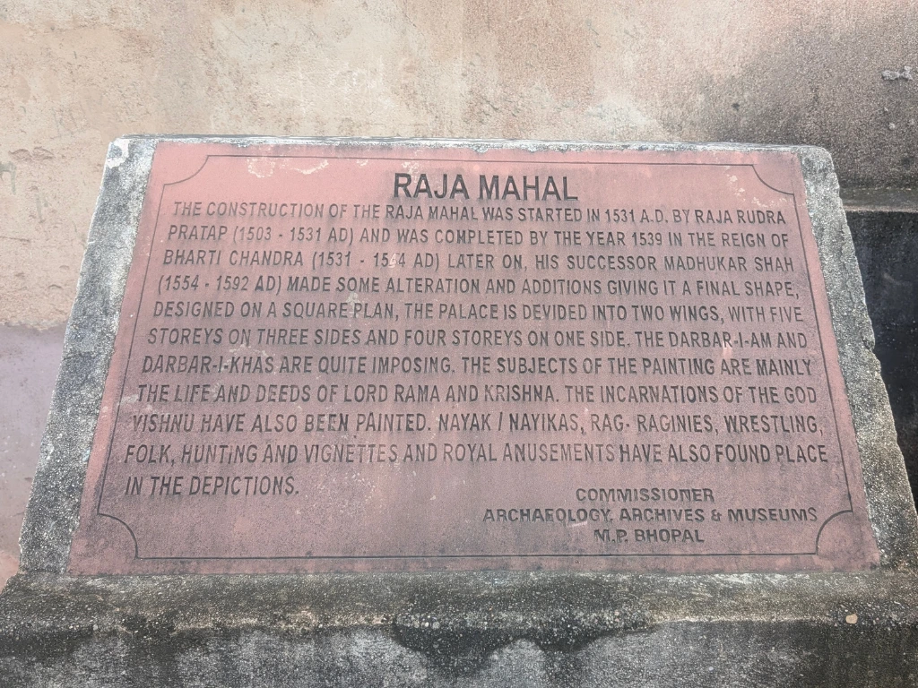 Next door lies the Raja Mahal, the former royal residence of the Bundela kings. Unlike the grandeur of Jahangir Mahal, Raja Mahal reflects a more personal, intimate royal life. Its highlight? Stunning murals on the walls and ceilings, many still vibrant after centuries. They depict stories from the Ramayana, Mahabharata, and local folklore, making Raja Mahal a quiet treasure trove of art and devotion.